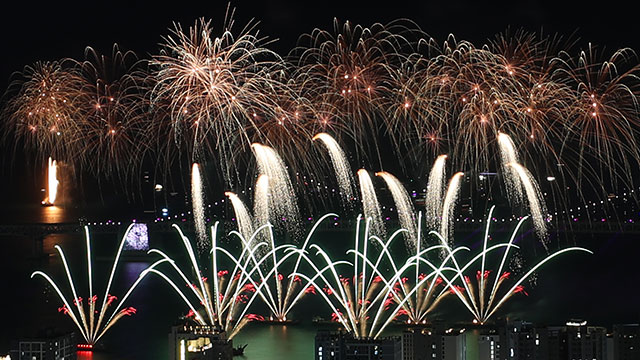 정면에서 볼 수는 없지만 전체적인 불꽃을 관람할 수 있는 곳이 민락 수변 공원입니다. 수변공원 주변 회타운에서 회를 떠서 수변공원에서 먹으면서 관람할수 있다는 장점이 있습니다. 다만, 좋은 자리는 쟁탈전이 치열하니 서두르셔야 합니다.