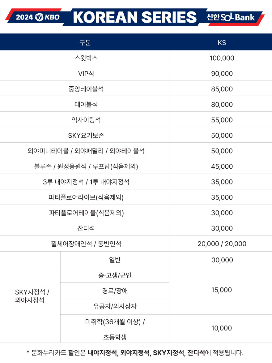 2024 한국시리즈가 드디어 시작됩니다! 한국 프로야구의 최종 챔피언을 가리는 이 대회는 매년 수많은 팬들의 관심을 끌며, 치열한 티켓 경쟁이 예상됩니다. 이번 포스트에서는 한국시리즈 티켓 예매 방법, 좌석별 가격, 경기 일정에 대해 알아보겠습니다. 직관예매 빠르게 원하시는 분들은 아래를 클릭하시면 됩니다.